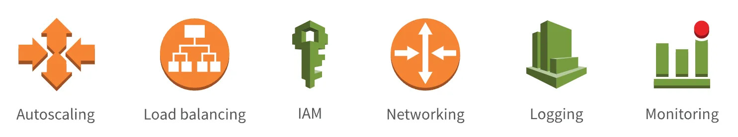 Integration with AWS Services: Seamlessly works with other AWS services like Application Load Balancer, CloudWatch, IAM, and VPC.