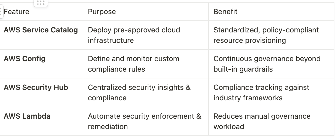 Custom Guardrails & Policies: Organizations can create and apply custom service control policies (SCPs) and AWS Config rules to tailor governance according to their needs.