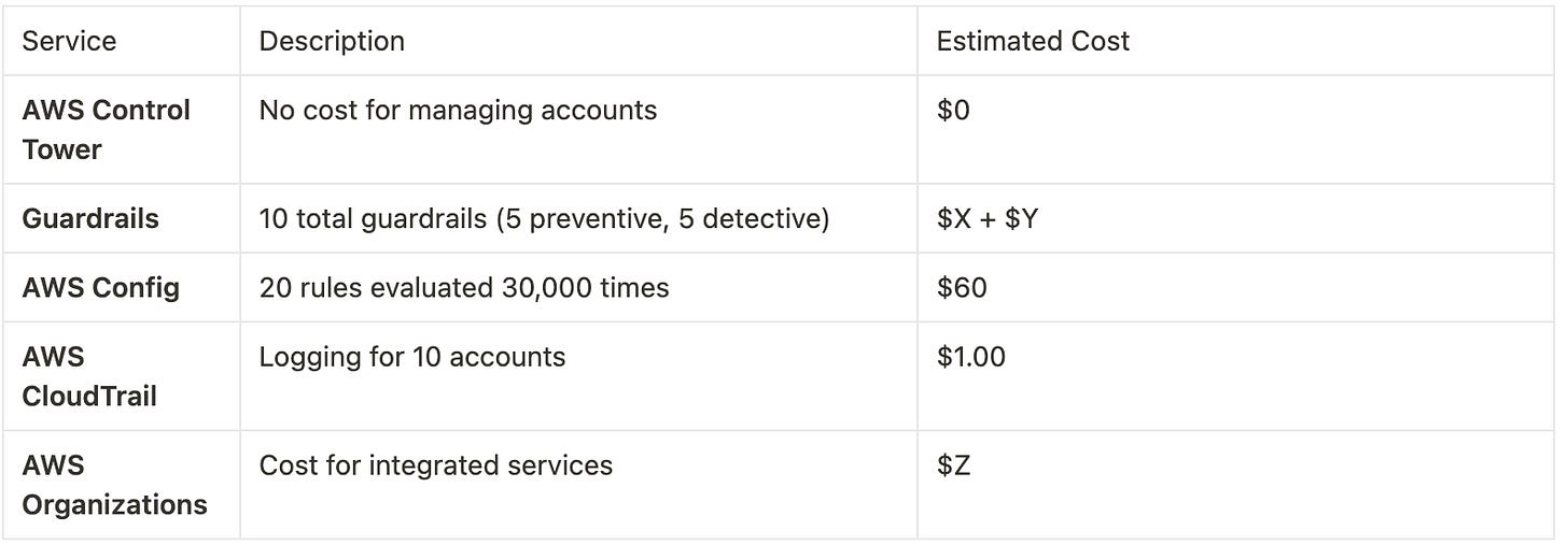 If any integrated services like IAM roles or SCPs incur costs, this could be added to the overall bill.