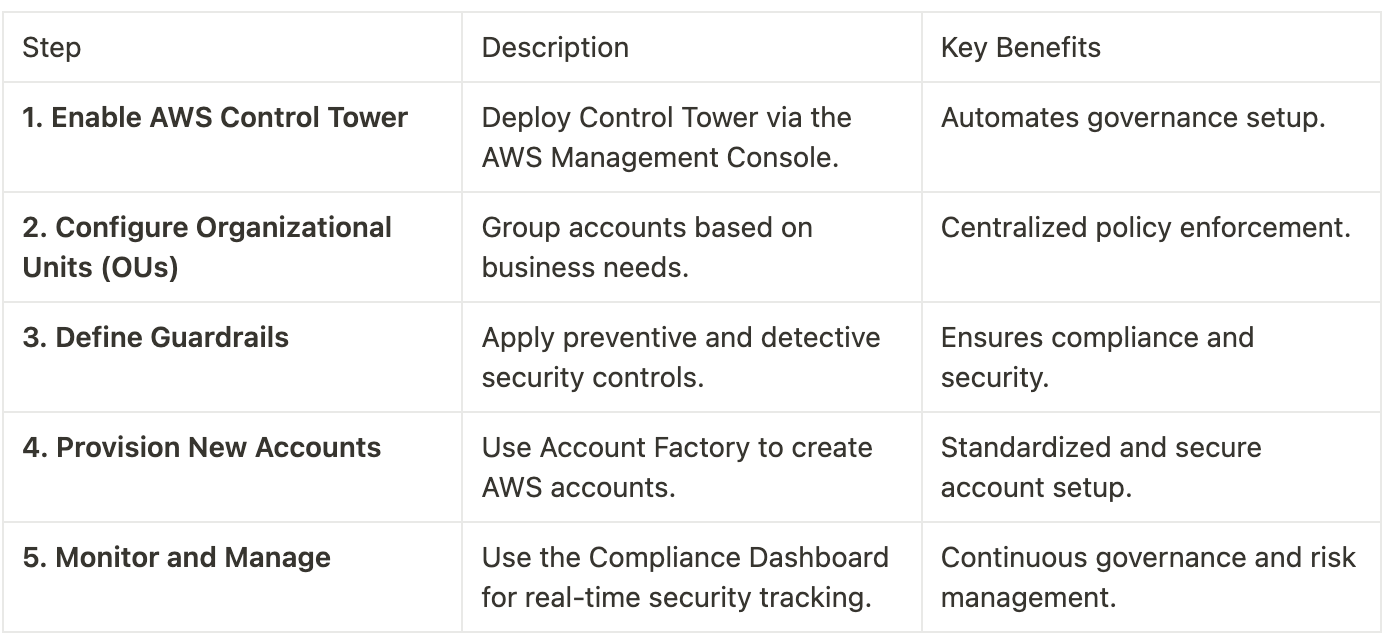 By leveraging preventive and detective guardrails, AWS Control Tower helps organizations automate security enforcement, reduce compliance risks, and maintain a secure AWS environment.