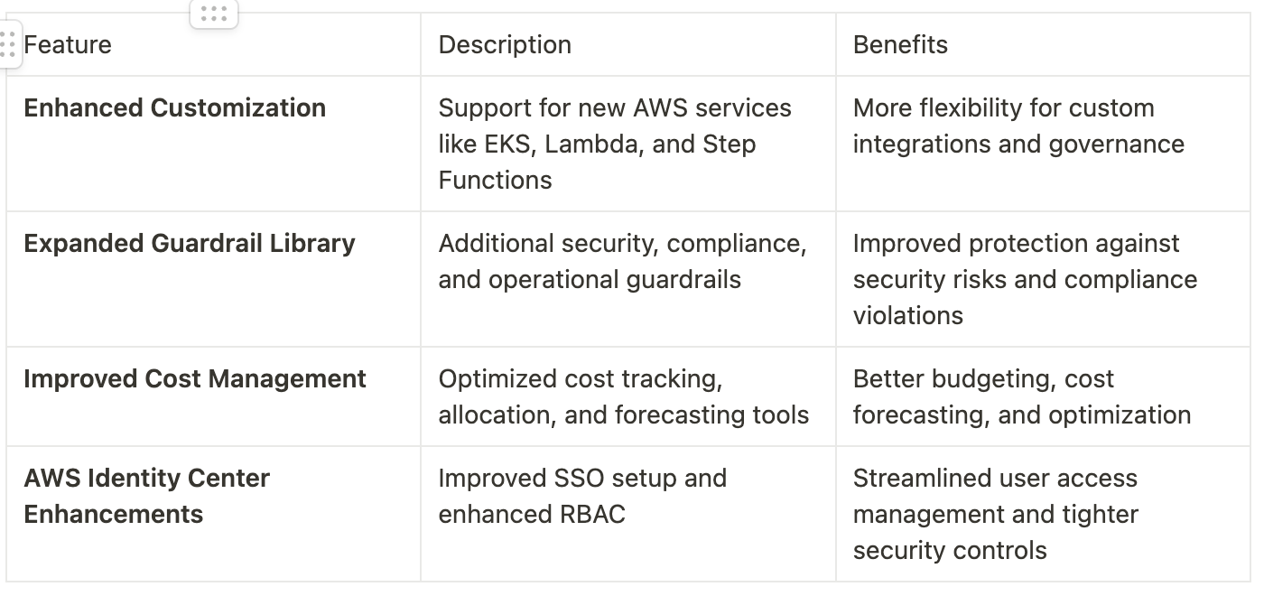 AWS Control Tower has continuously evolved to meet the growing needs of organizations. The 2025 updates bring new features and improvements, enhancing the flexibility, security, and cost-effectiveness of managing AWS environments. Here are some of the key updates for 2025: